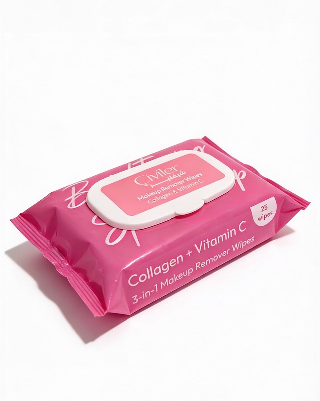 3 In 1 Makeup Remover Serum Wipes (Cleansing - Collagen serum + Vitamin C serum ) Çiviler serum wipes is more than cleansing its skincare in every wipe.